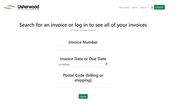 The e-mail that you are logged into under must be the e-mail that is receiving the invoices for them to show up under your account. If you are not receiving the invoices but would like to, reach out to AR@usherwood.com to have your email added.