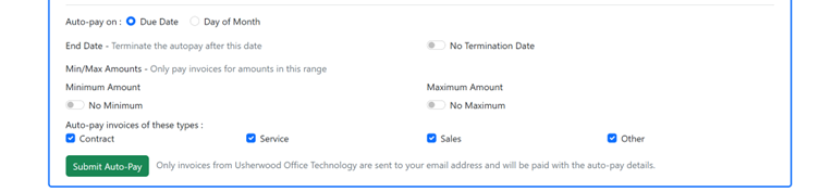 Click the Submit Auto-Pay button at the bottom to create the Auto-Pay